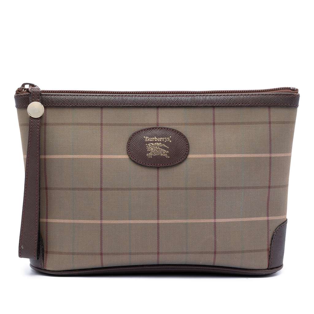 Burberry Vintage Check Canvas Wristlet Clutch Brown Small Ca