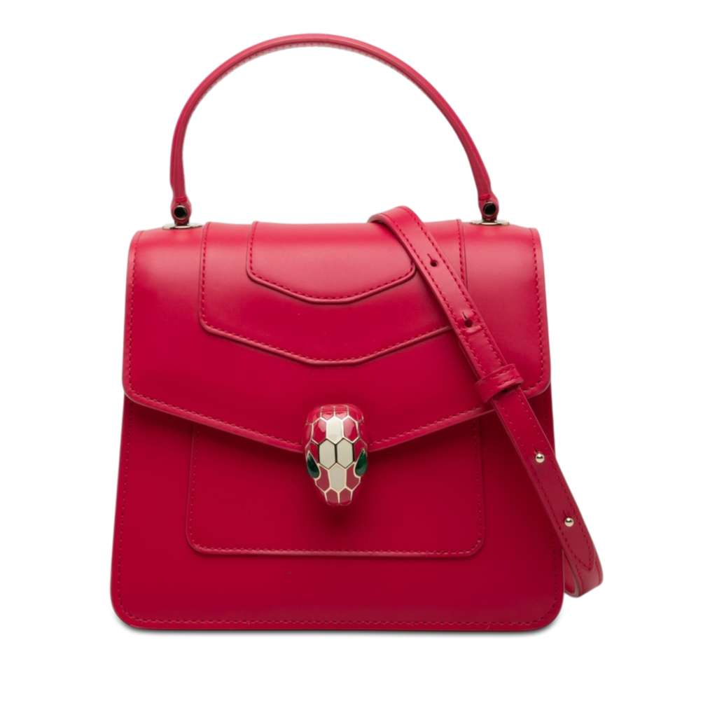 Bvlgari Small Calfskin Serpenti Forever Top Handle Bag Red M