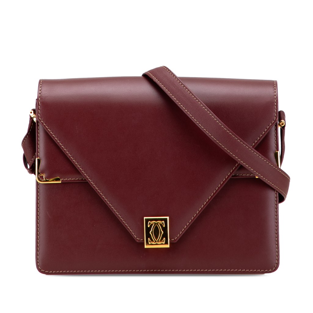 This crossbody bag features a leather body, an adjustable flat leather strap, double flaps with a push lock closure, and interior zip and slip pockets.