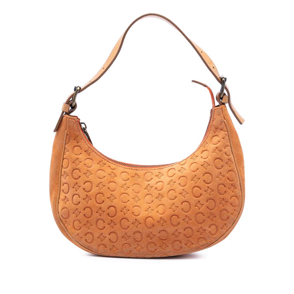 Celine C Macadam Suede Shoulder Bag Orange Small Leather