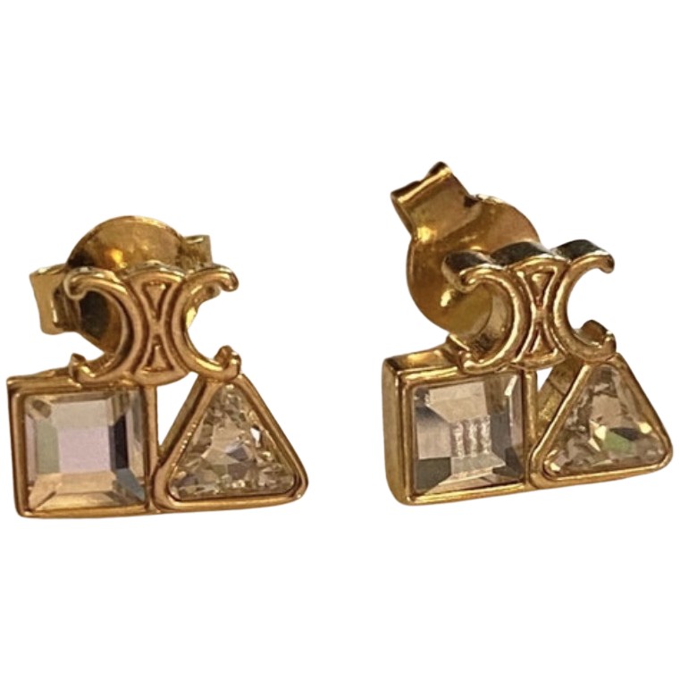 Celine Celine Geometric Triomphe Earrings Gold Brass