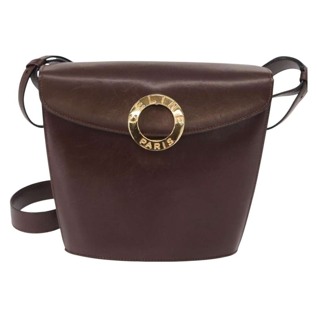Celine Circle Logo Shoulder Bag Brown Mini Leather