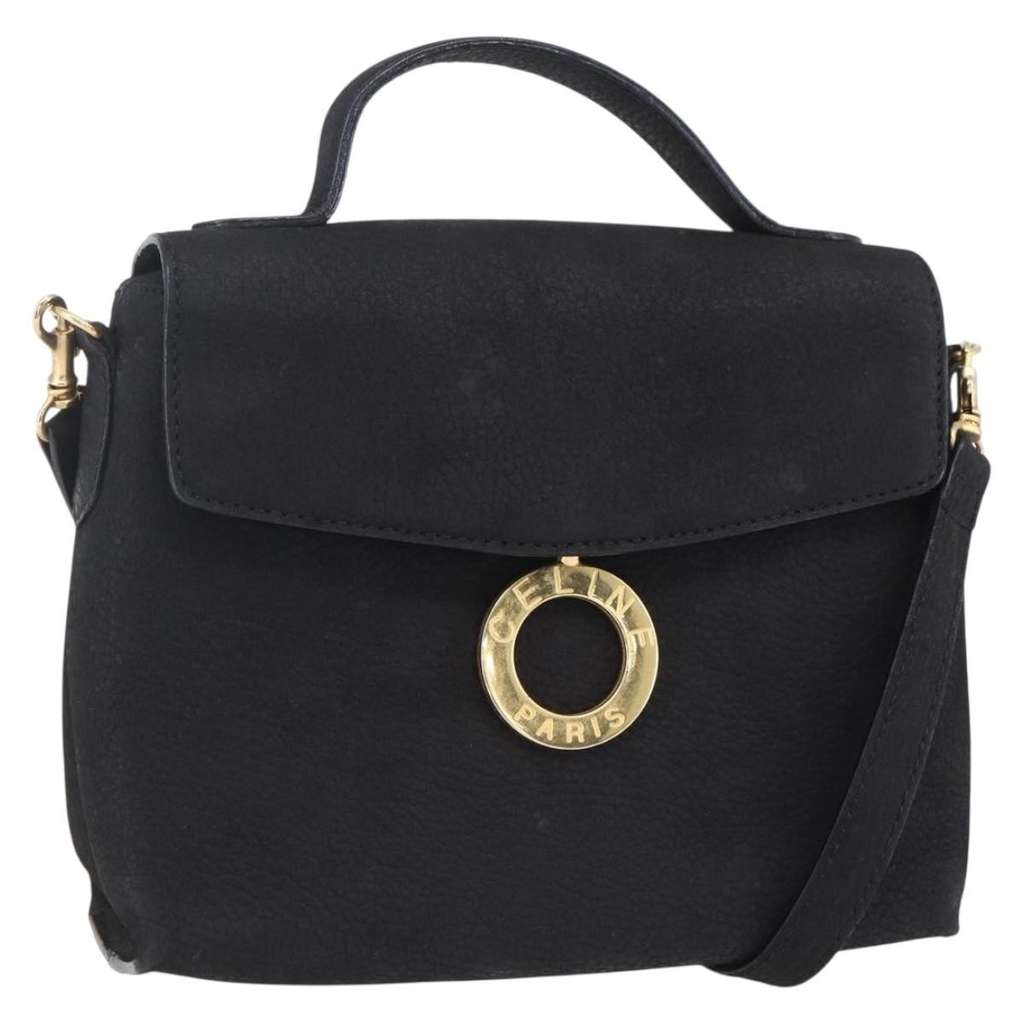 Celine Circle Logo Shoulder Bag Black Mini Leather