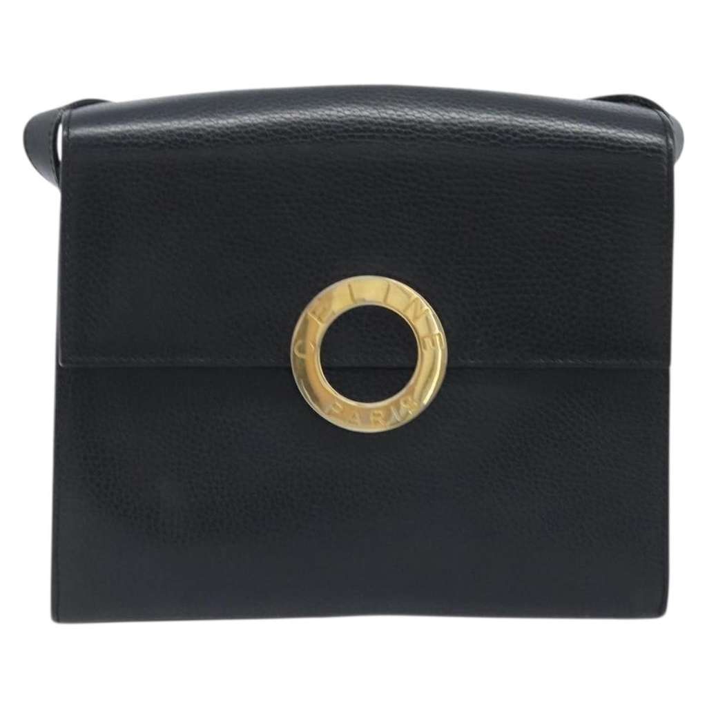 Celine Circle Logo Shoulder Bag Black Small Leather