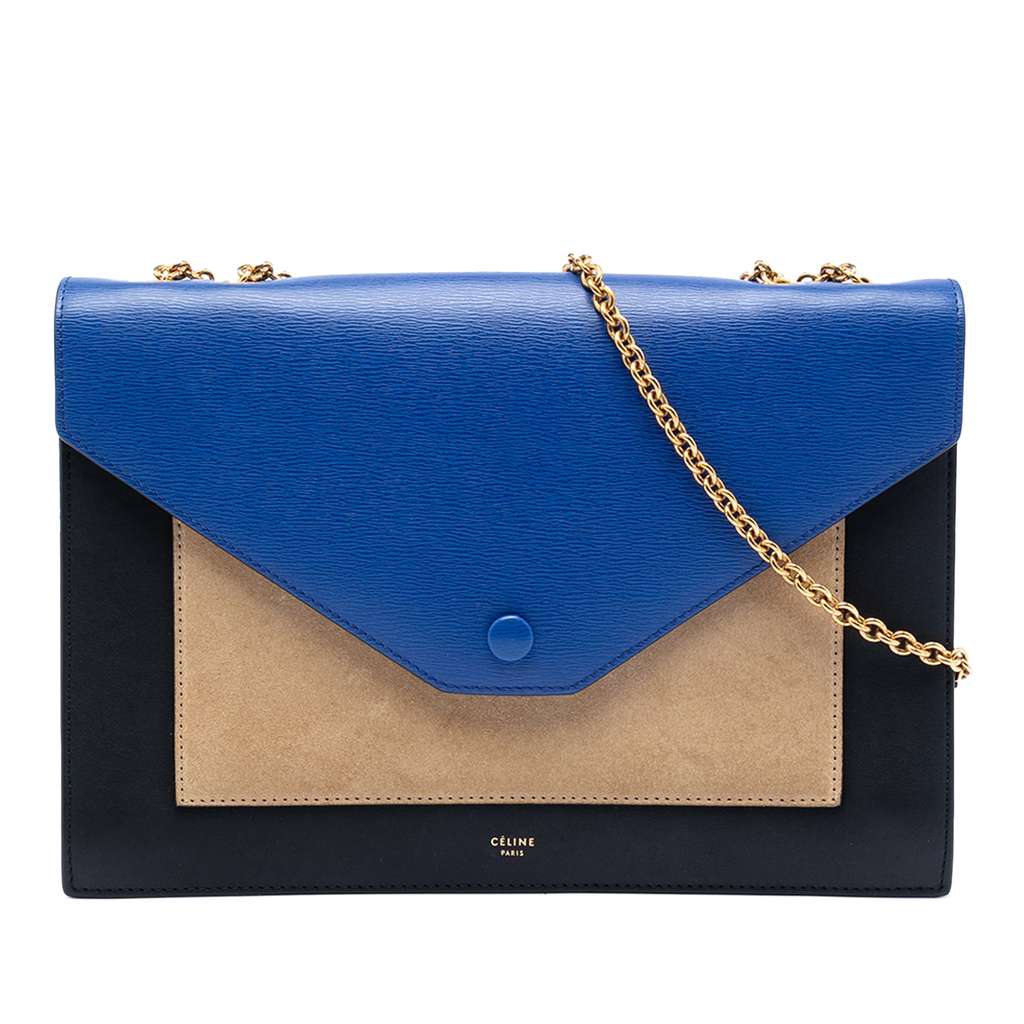 Celine Large Tricolor Calfskin and Suede Pocket Envelope Fla