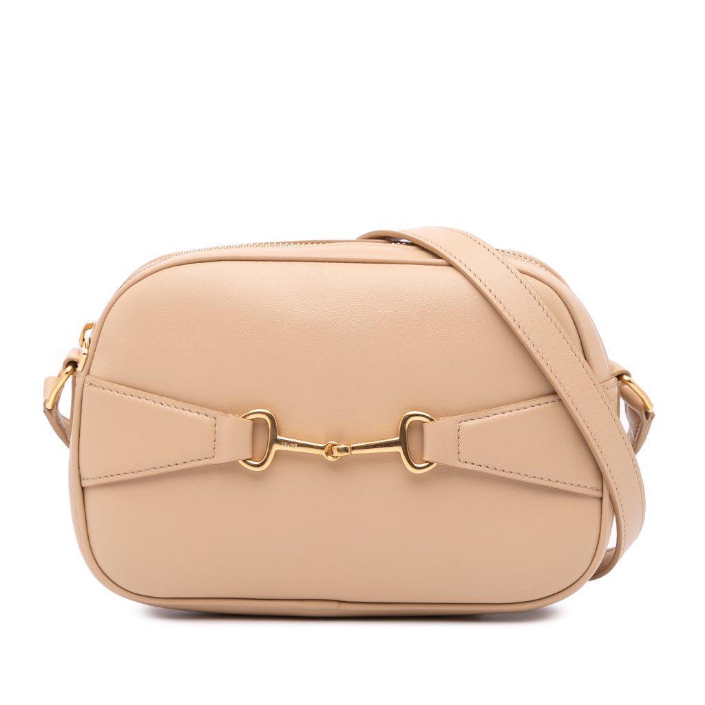 This crossbody bag features a leather body, an adjustable flat leather strap, a top zip closure, and an interior slip pocket.