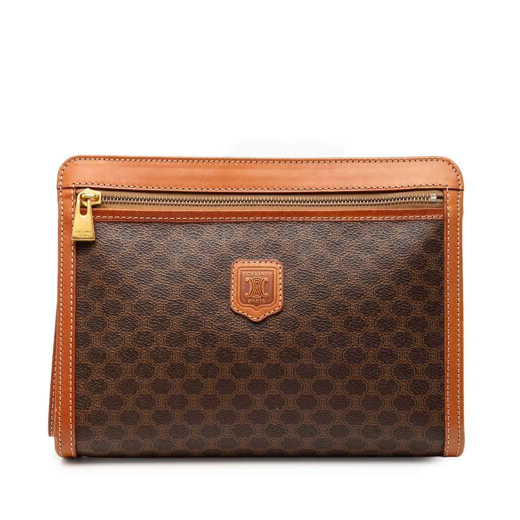 Celine Macadam Coated Canvas Clutch Brown Medium Canvas