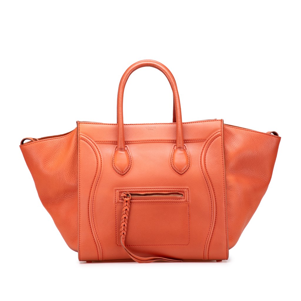 The Phantom Luggage Tote bag features a leather body, rolled leather handles, an open top, and interior and exterior zip pockets.
