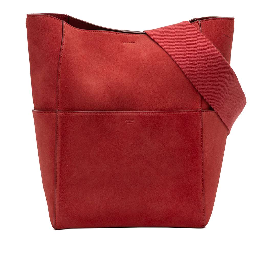 Celine Medium Suede Seau Sangle Bucket Bag Red Small Leather