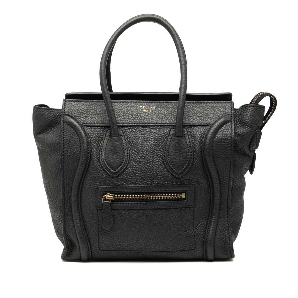 Celine Micro Drummed Calfskin Luggage Tote Black Medium Leat