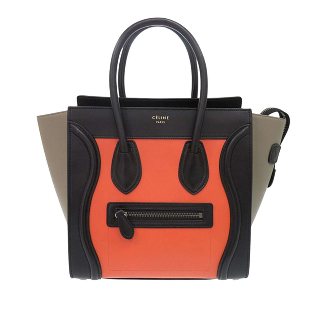 Celine Micro Tricolor Leather Luggage Tote Orange Medium Lea
