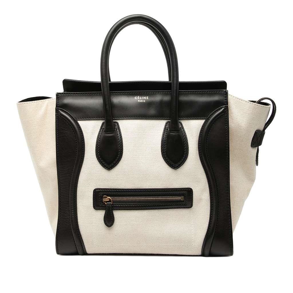 Celine Mini Bicolor Canvas and Leather Luggage Tote Brown La