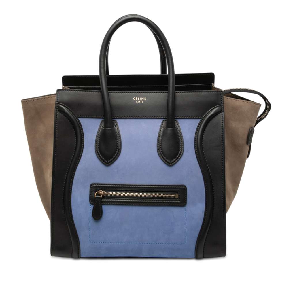 Celine Mini Tricolor Nubuck and Smooth Calfskin Luggage Tote