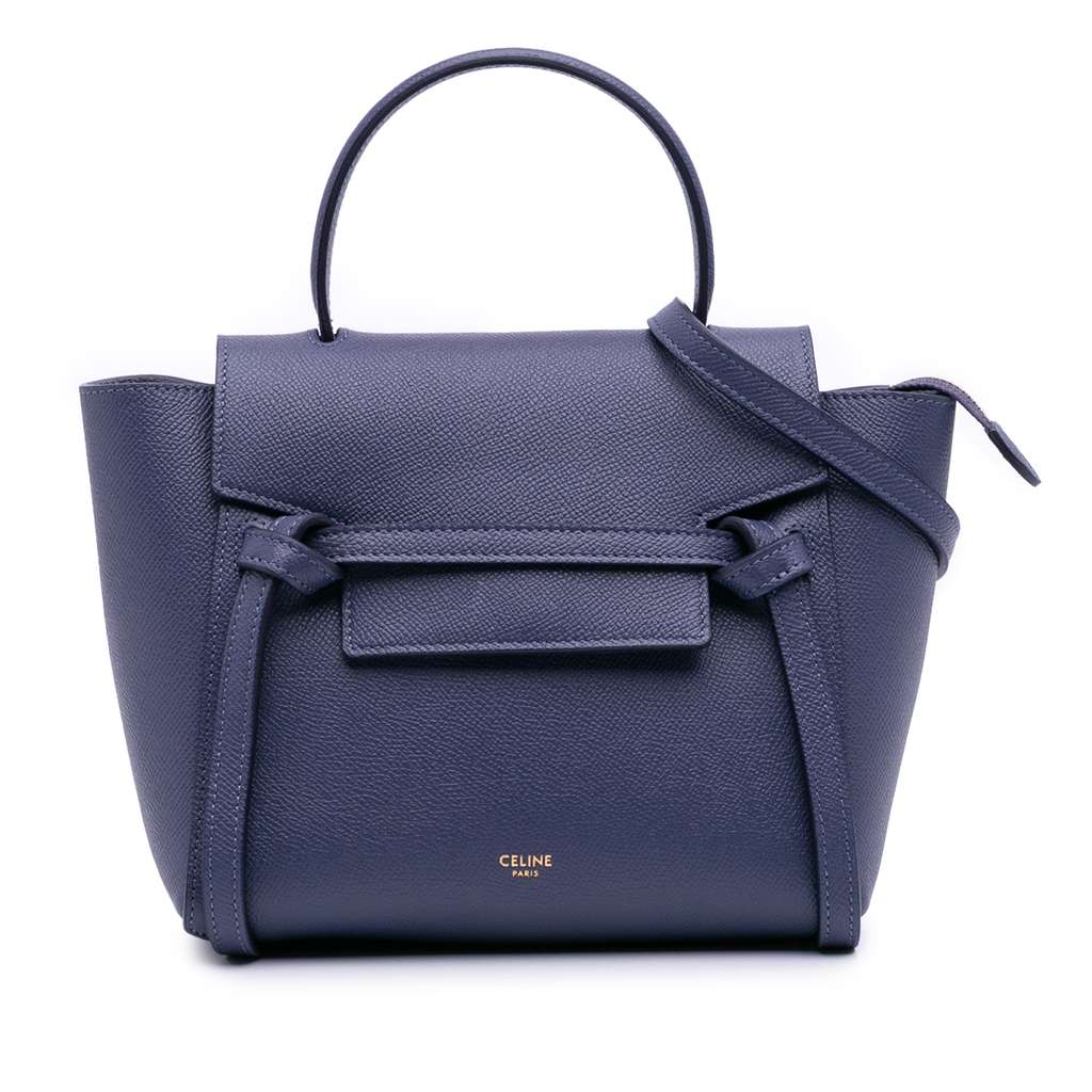 The Belt satchel features a leather body, flat handles, detachable flat shoulder strap, a top flap with slip-through closure, and a top zip closure.