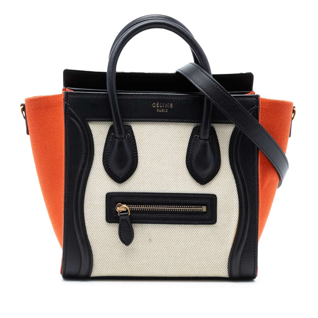 Celine Nano Tricolor Canvas and Leather Luggage Tote Brown S