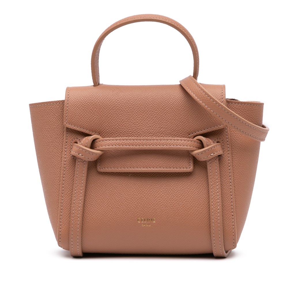 The Pico Belt bag features a leather body, a flat leather top handle, a detachable flat leather shoulder strap, and a top zip closure with a front flap with pull-through and magnetic snap closure.