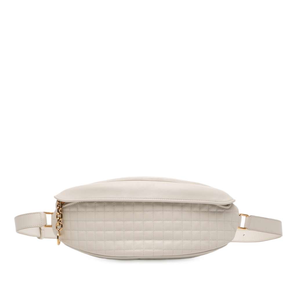 Celine Quilted Calfskin C Charm Belt Bag White Medium Leathe
