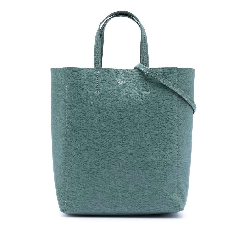 The Cabas tote bag features a leather body, flat leather handles, a detachable flat leather strap, an open top, and an interior zip pocket.