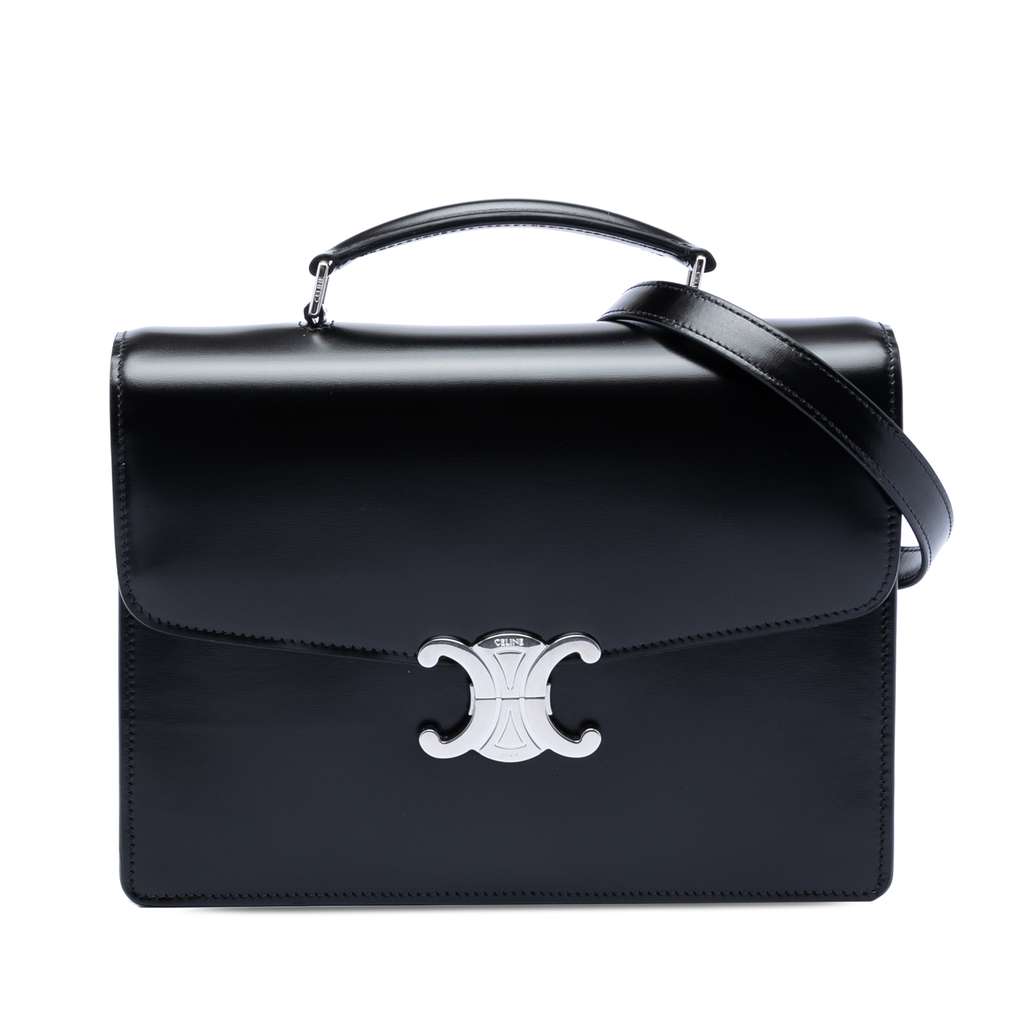 Celine Small Shiny Calfskin Triomphe Cartable Satchel Black