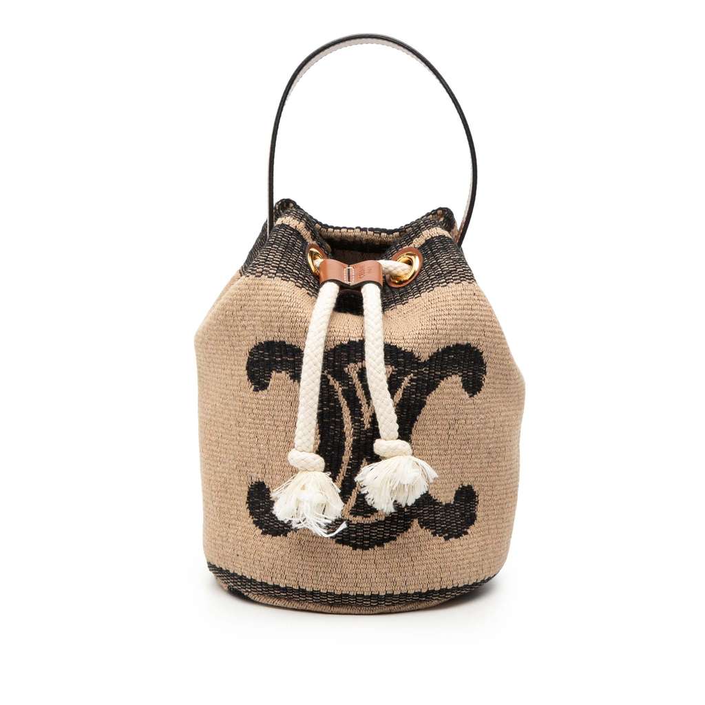 Celine Small Triomphe Raffia Drawstring Bucket Bag Brown Min