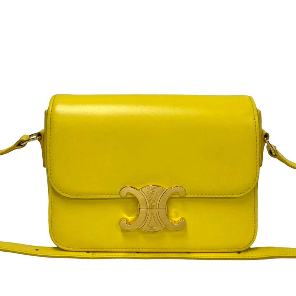 Celine Teen Shiny Calfskin Triomphe Crossbody Yellow Mini Le