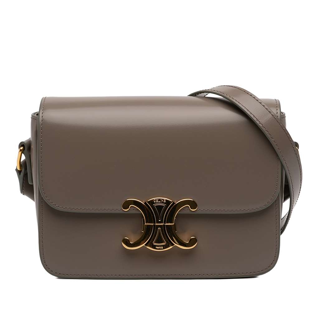 Celine Teen Shiny Calfskin Triomphe Crossbody Brown Mini Lea