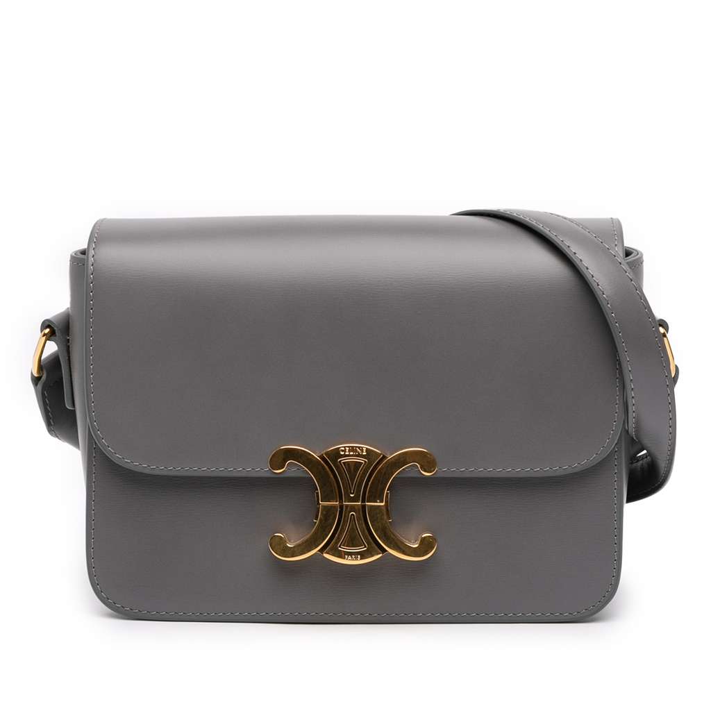 Celine Teen Shiny Calfskin Triomphe Crossbody Grey Mini Leat