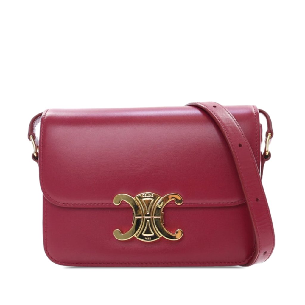 This crossbody bag features a leather body, a flat leather shoulder strap, a front flap with a push lock closure, and interior zip and slip pockets.