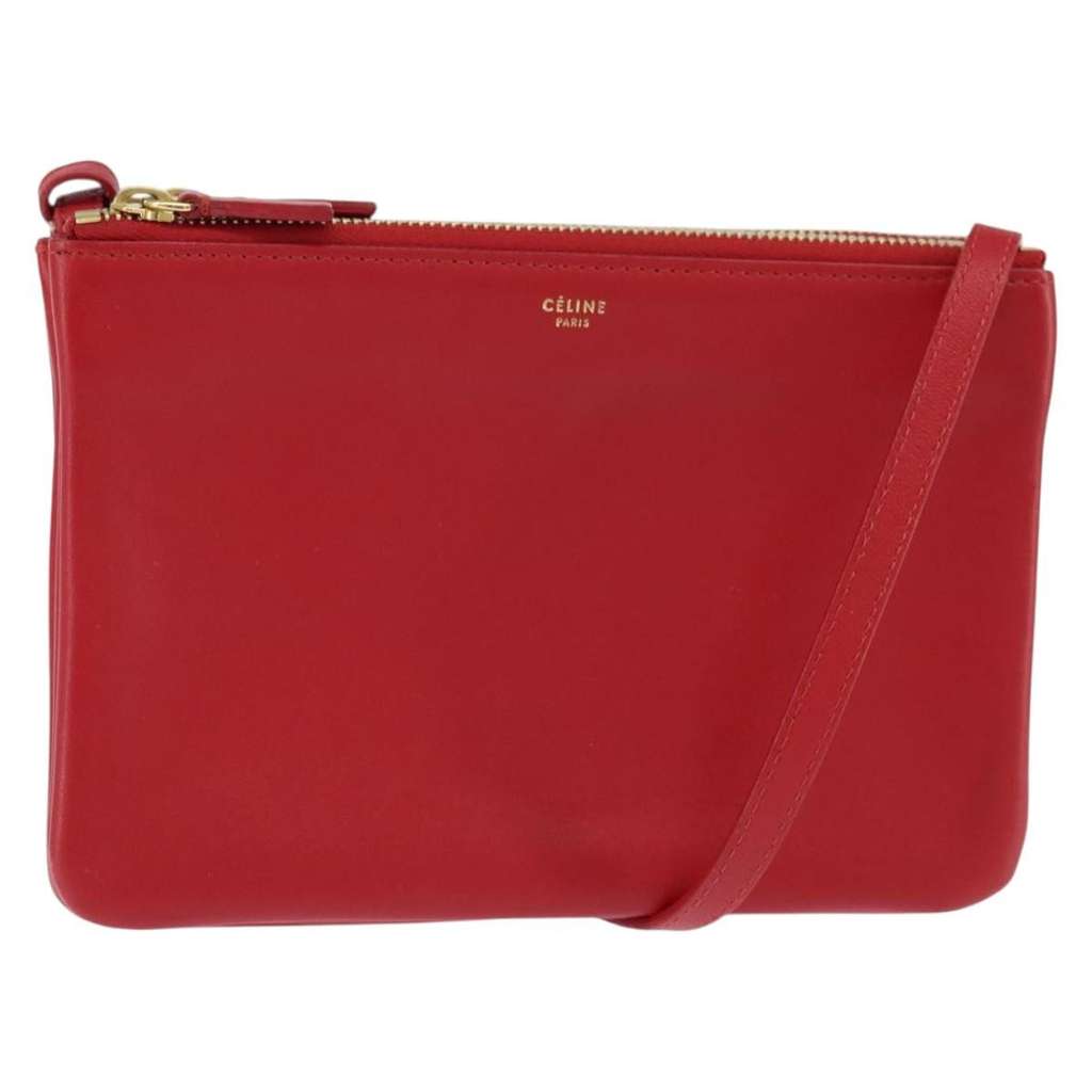 Celine Trio Crossbody Bag Red Small Leather | Pre-Loved Luxu