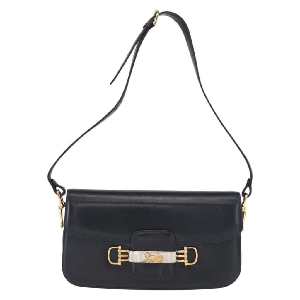 Celine Vintage Carriage Flap Bag Navy Medium Leather