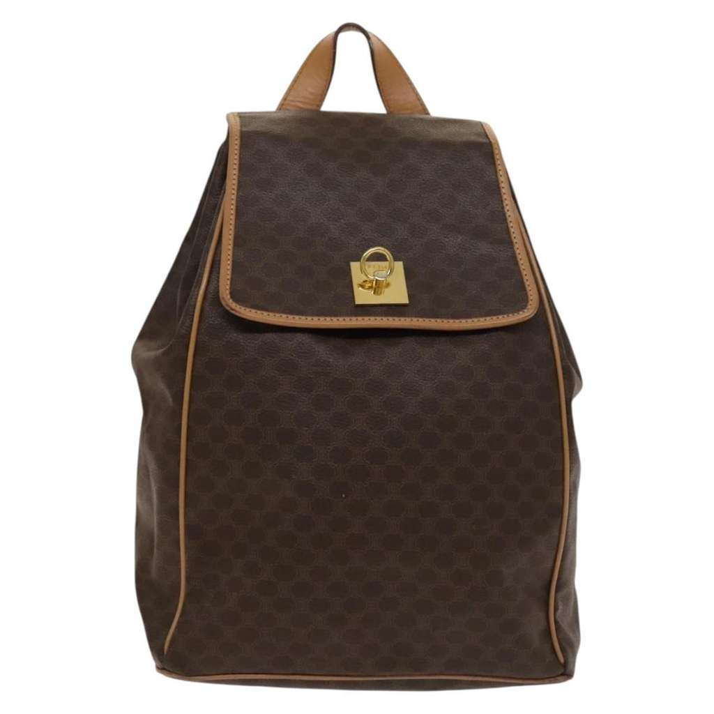 Celine Vintage Drawstring Flap Backpack Brown Small Canvas