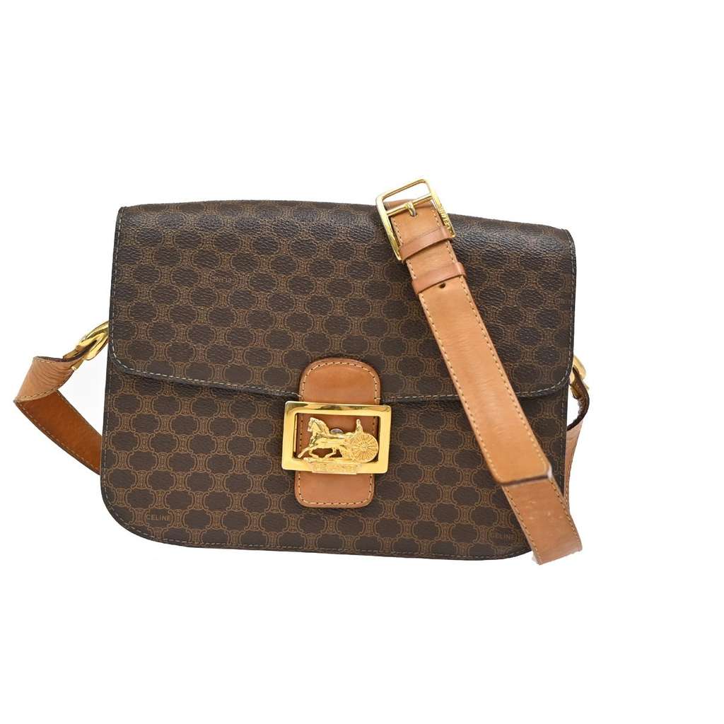 Celine Vintage Horse Carriage Macadam Shoulder Bag Brown Sma