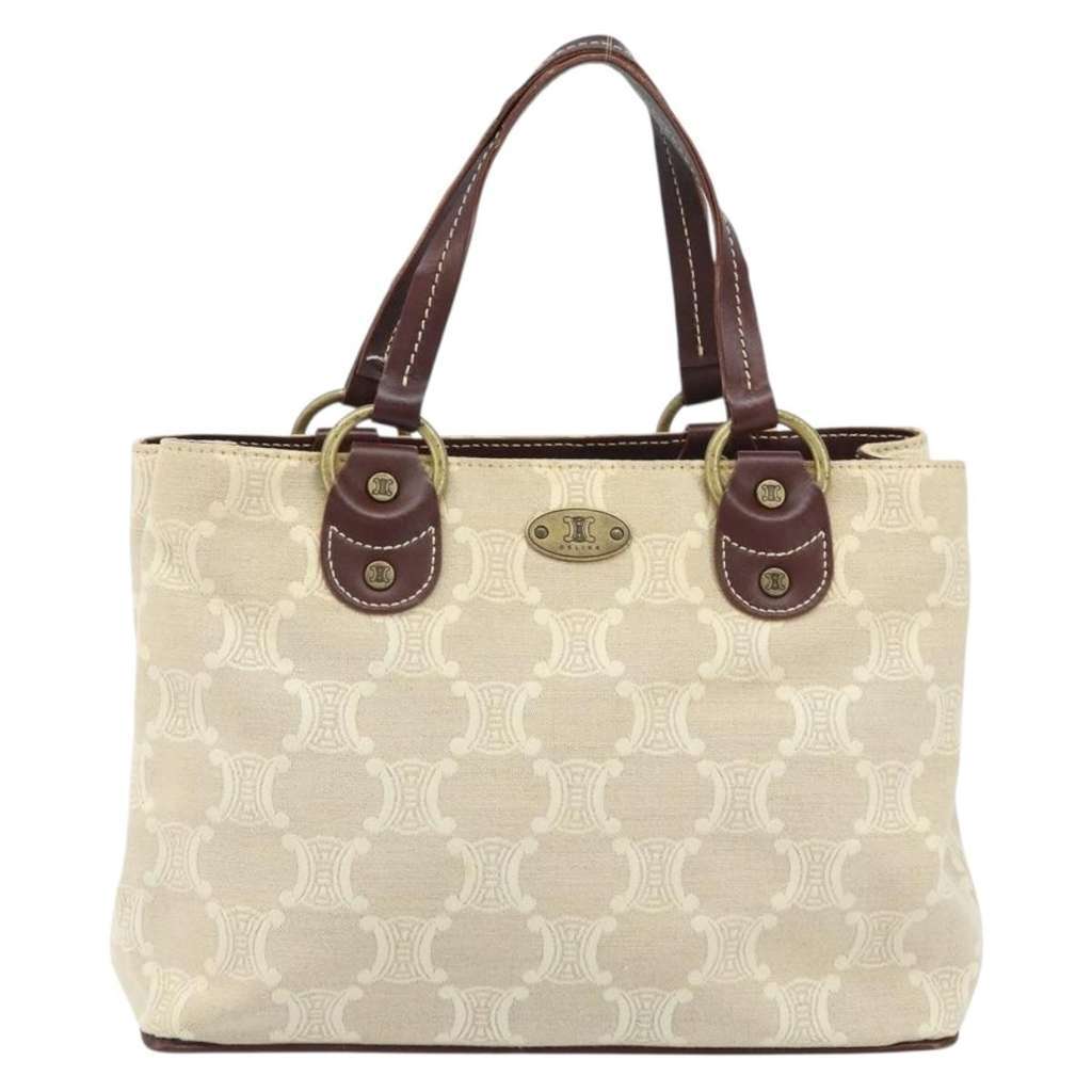 Celine Vintage Macadam Handbag Beige Medium Canvas