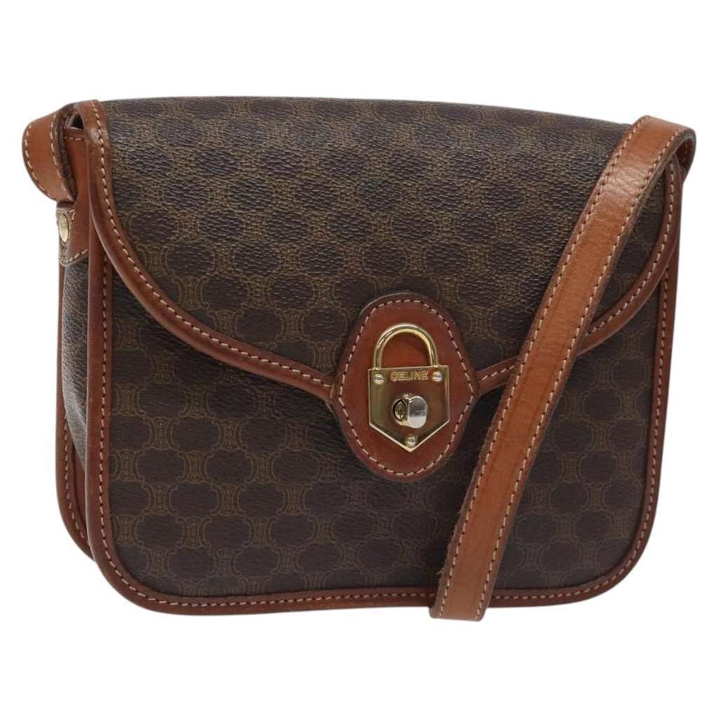 Celine Vintage Macadam Shoulder Bag Brown Mini Canvas