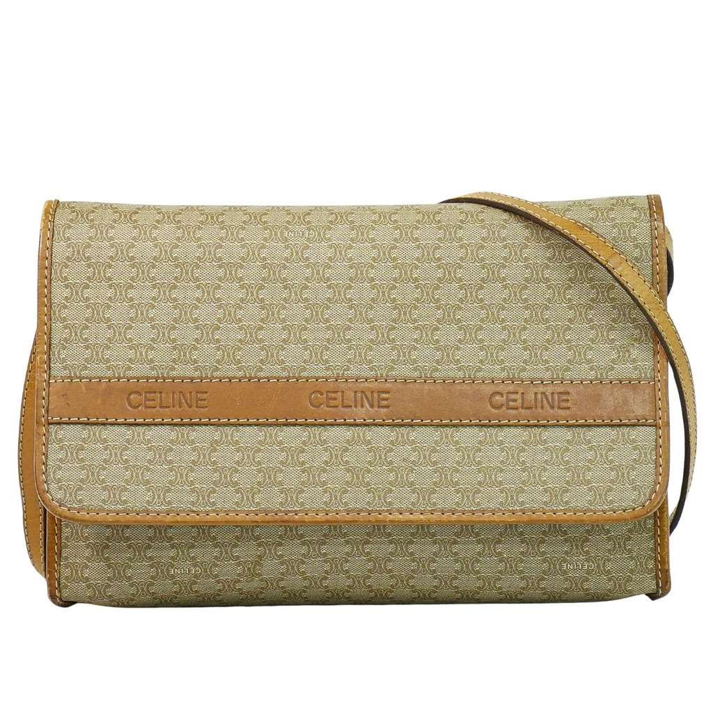 Celine Vintage Macadam Shoulder Bag Beige Medium Canvas