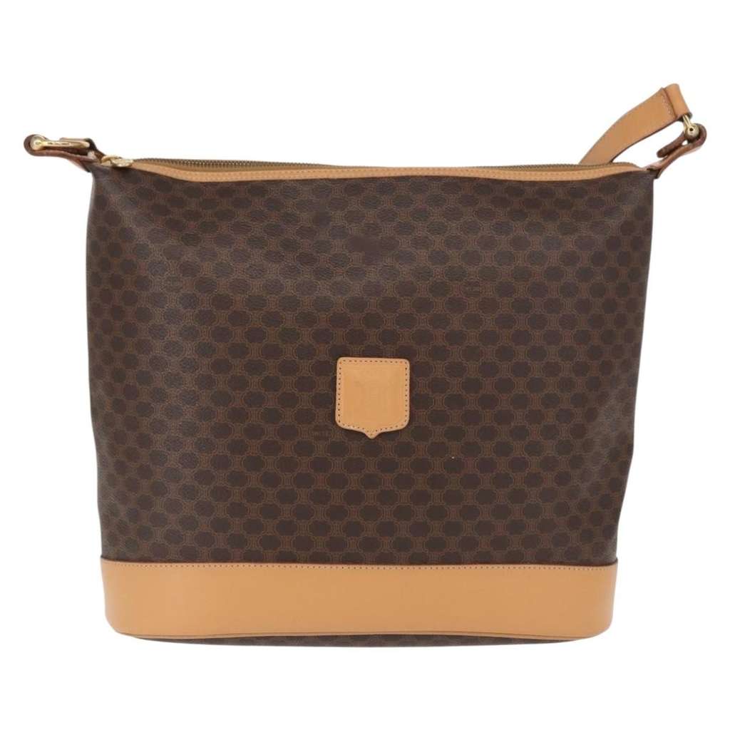 Celine Vintage Macadam Shoulder Bag Brown Large Canvas
