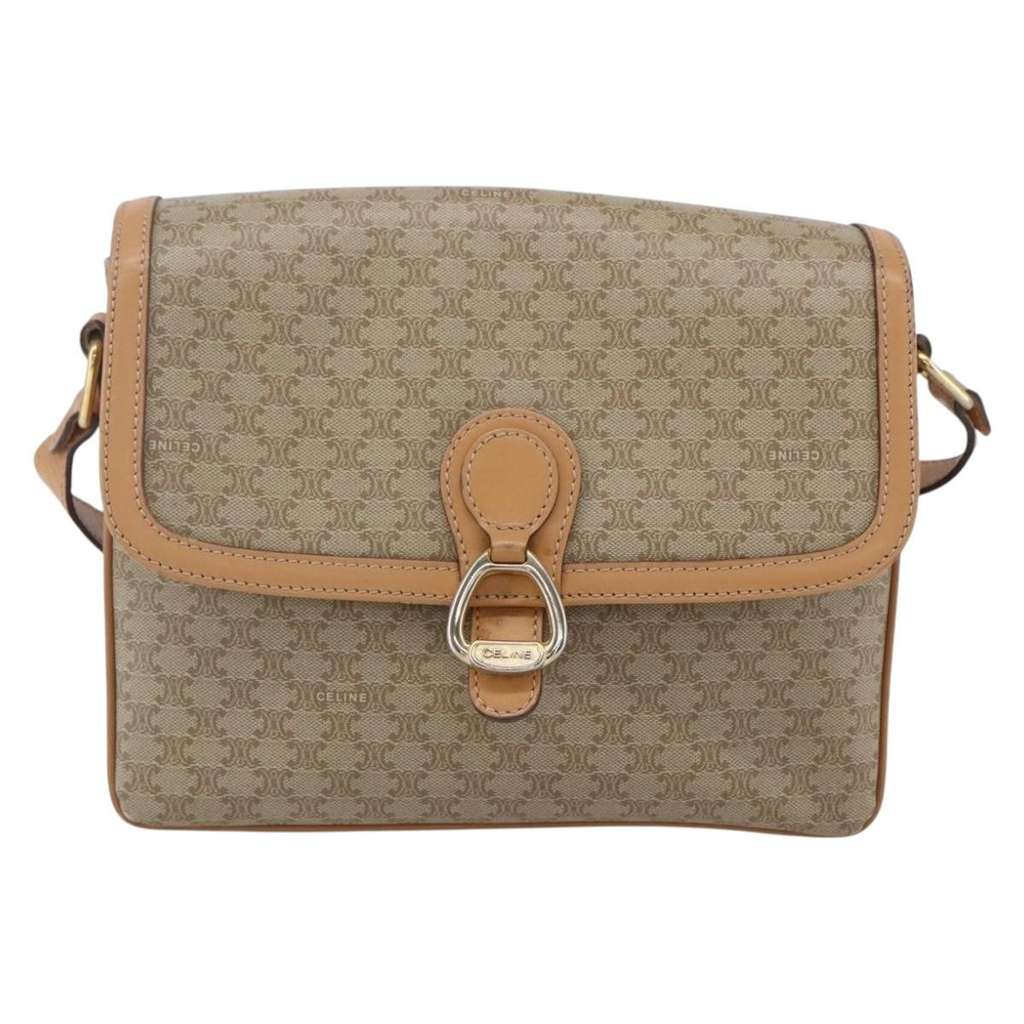 Celine Vintage Macadam Shoulder Bag Beige Small Canvas