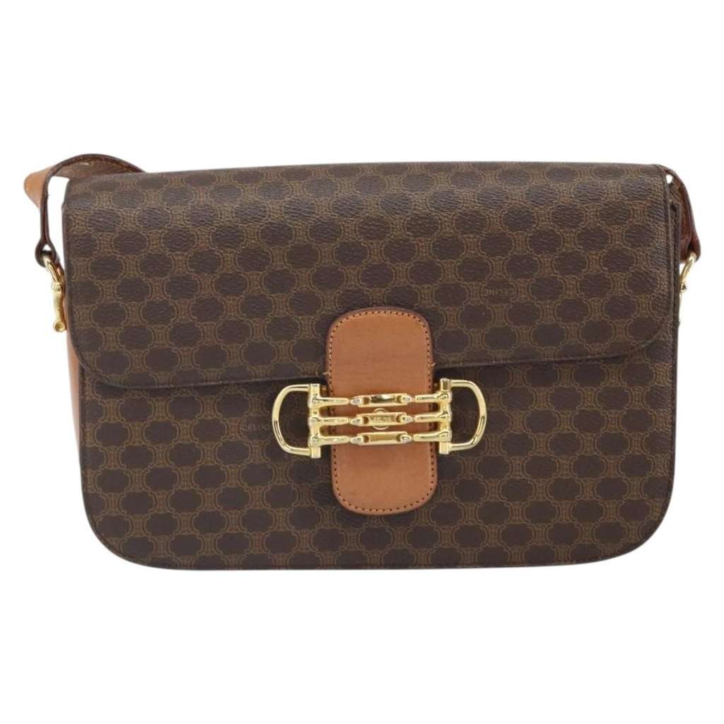 Celine Vintage Macadam Shoulder Bag Brown Small Canvas