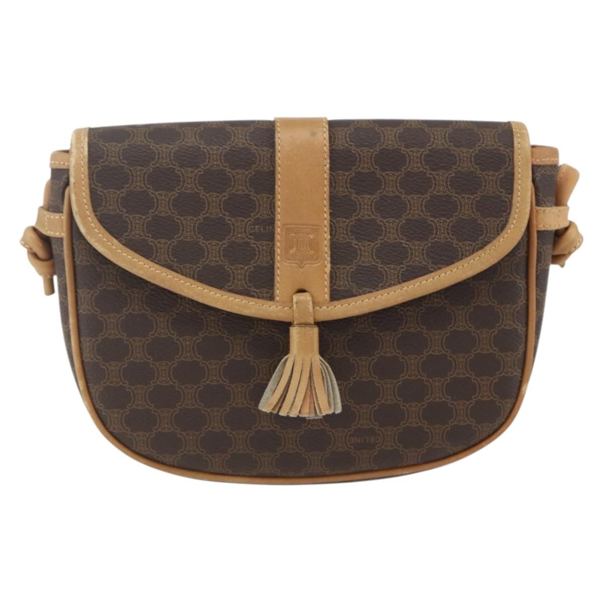 Celine Vintage Macadam Shoulder Bag Brown Mini Canvas