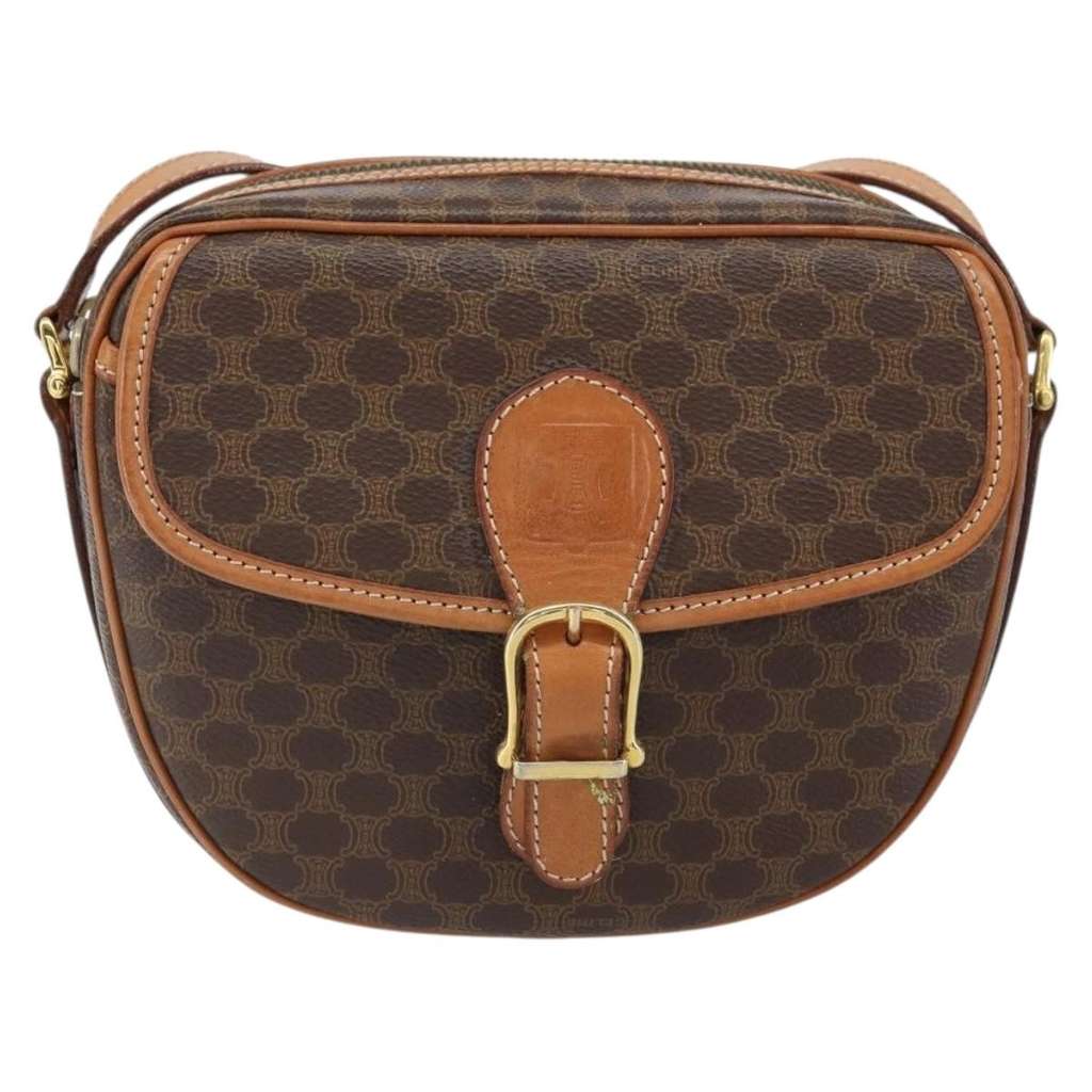 Celine Vintage Macadam Shoulder Bag Brown Mini Canvas