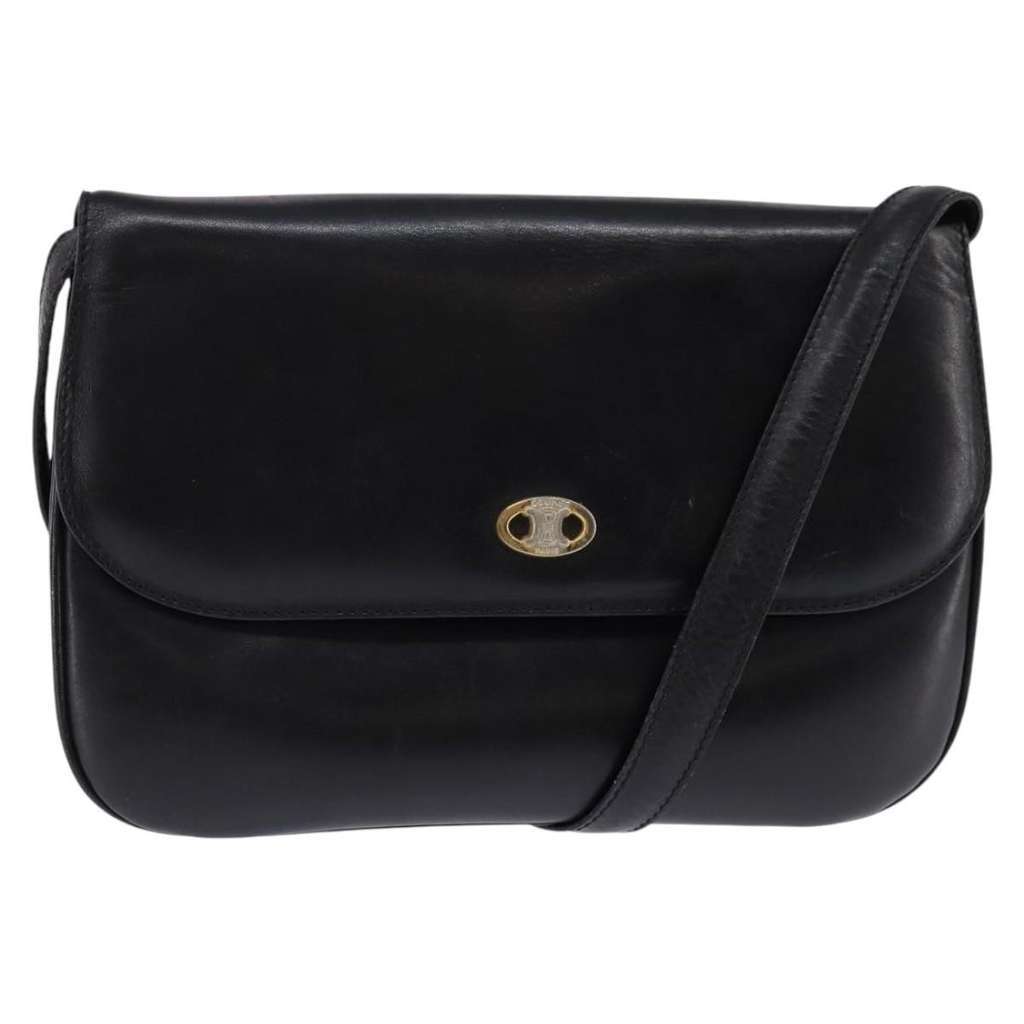 Celine Vintage Triomphe Shoulder Bag Black Small Leather