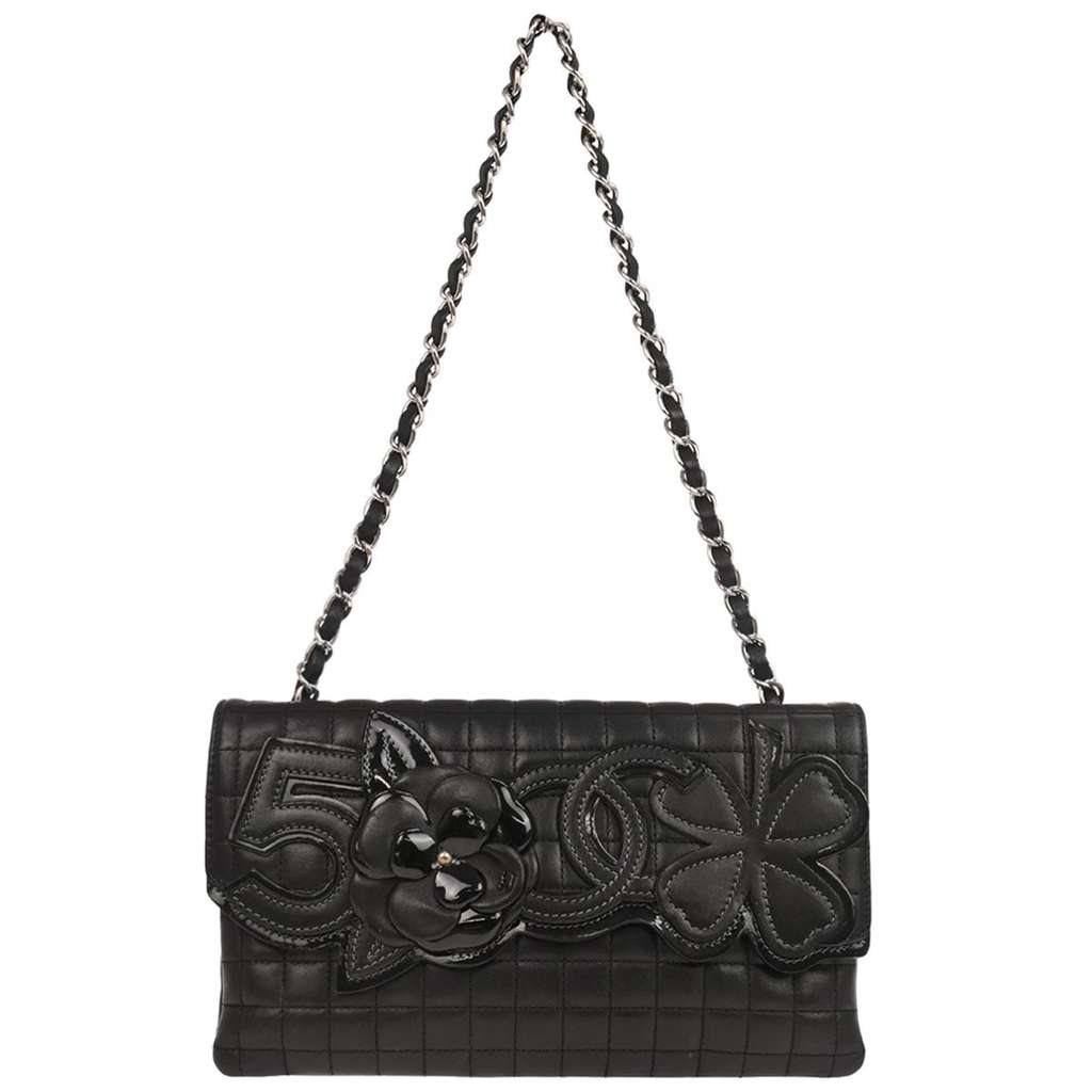 Chanel Camellia No.5 Chain Flap Bag Black Small Leather