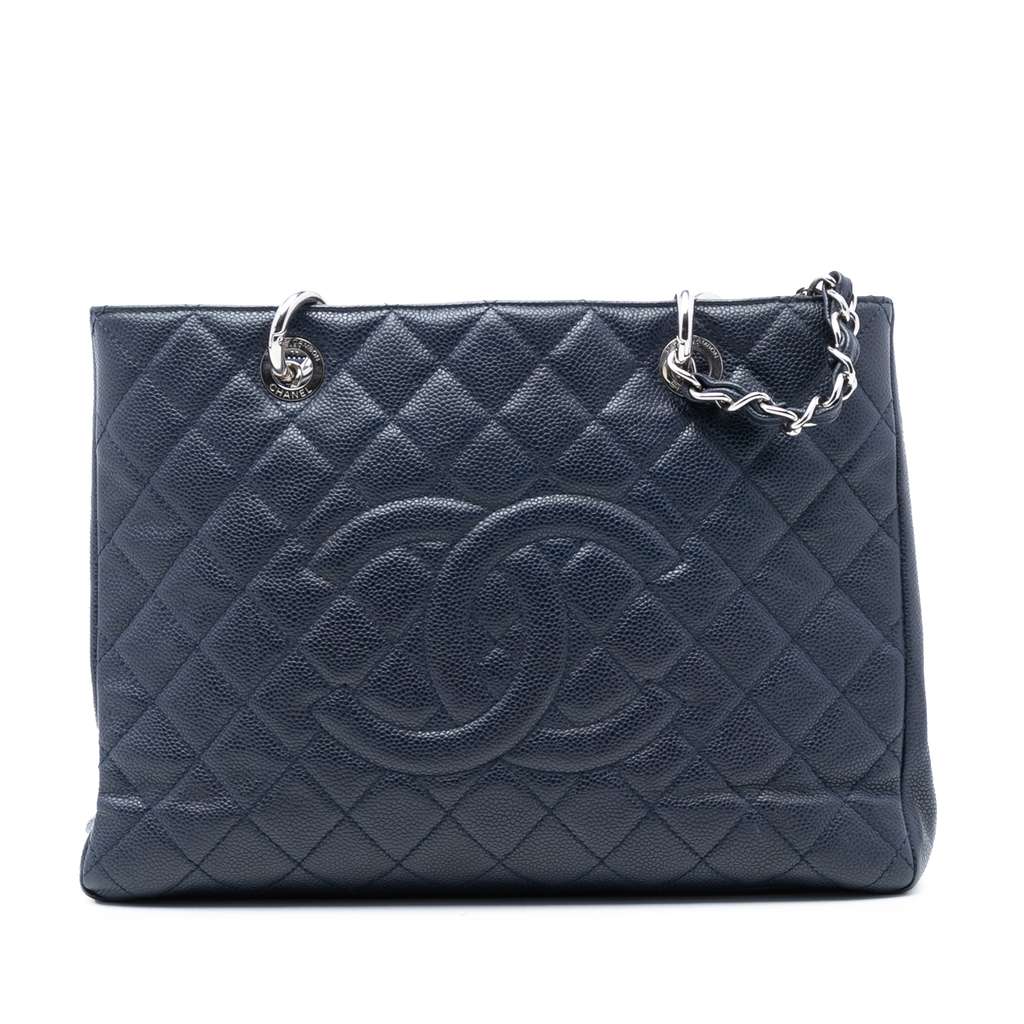 Chanel Caviar Grand Shopping Tote Blue Large Leather