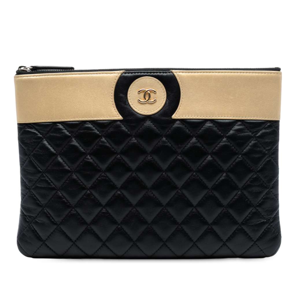 This clutch bag features a leather body, and a top zip closure, and an interior pocket.