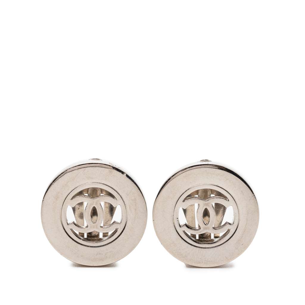 Chanel CC Brass Plated Round Clip On Earrings Silver Brass