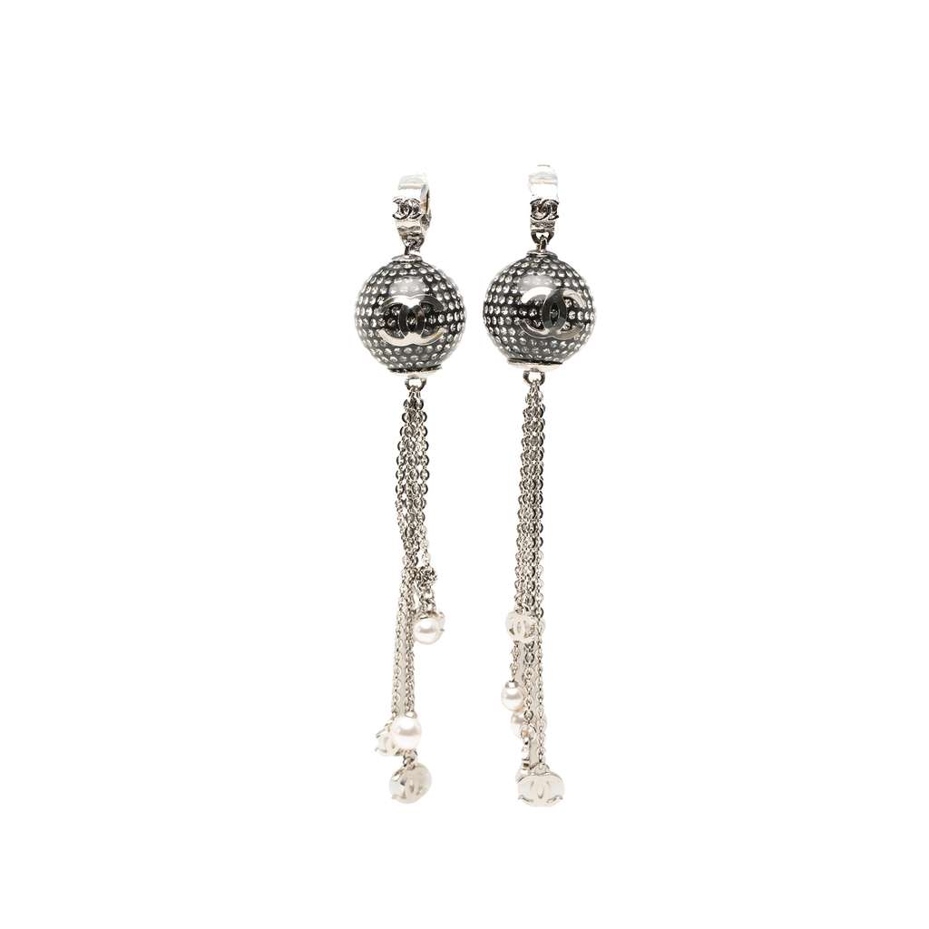 Chanel CC Brass Resin Strass Faux Pearl Disco Ball Drop Clip