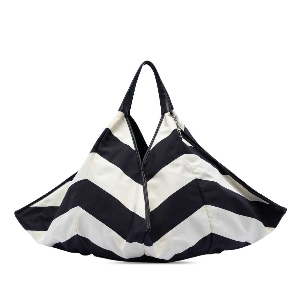 Chanel CC Canvas Stripe Tote Black Large Canvas | Pre-Loved
