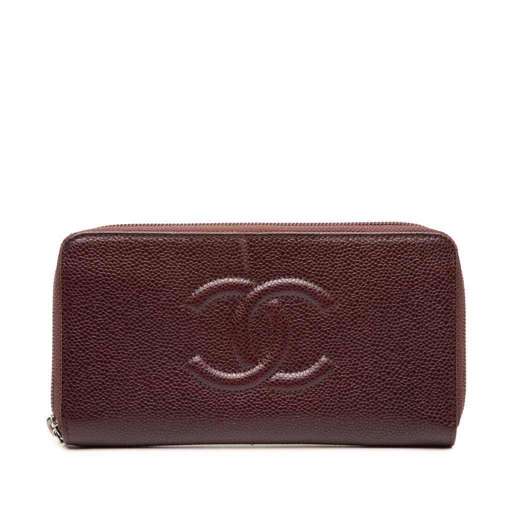 Chanel CC Caviar Zip Around Wallet Red Leather | Pre-Loved L