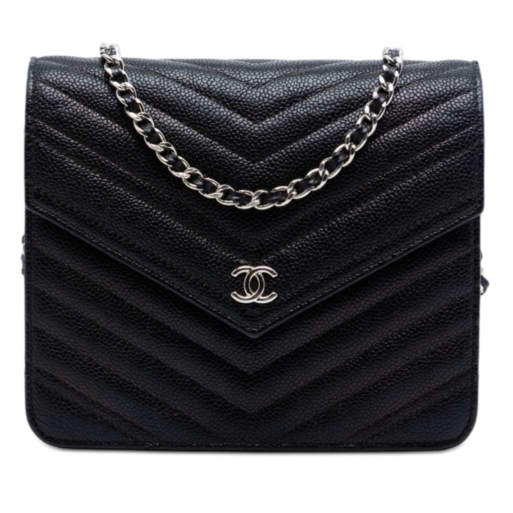 Chanel CC Chevron Caviar Square Wallet On Chain Black Mini L