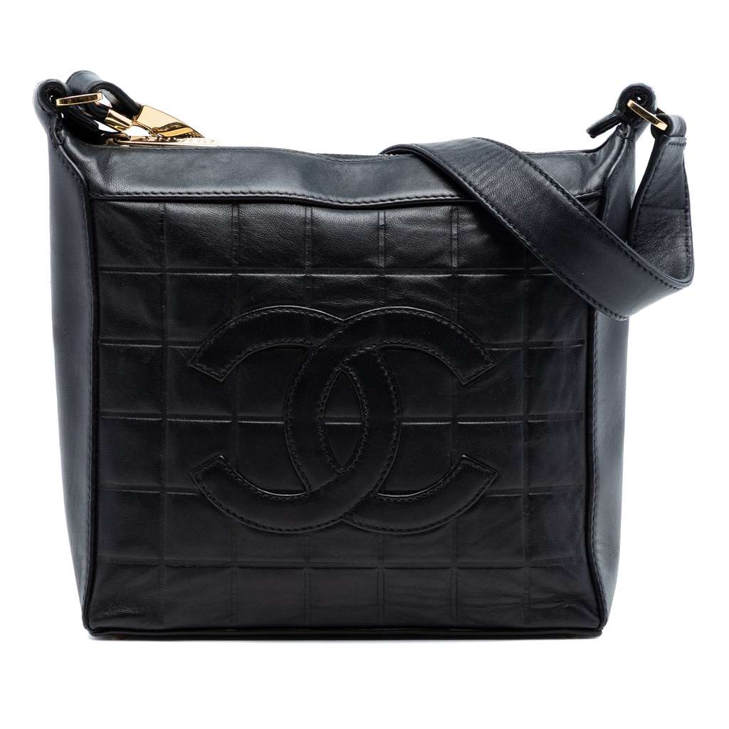 Chanel CC Chocolate Bar Lambskin Shoulder Bag Black Mini Lea